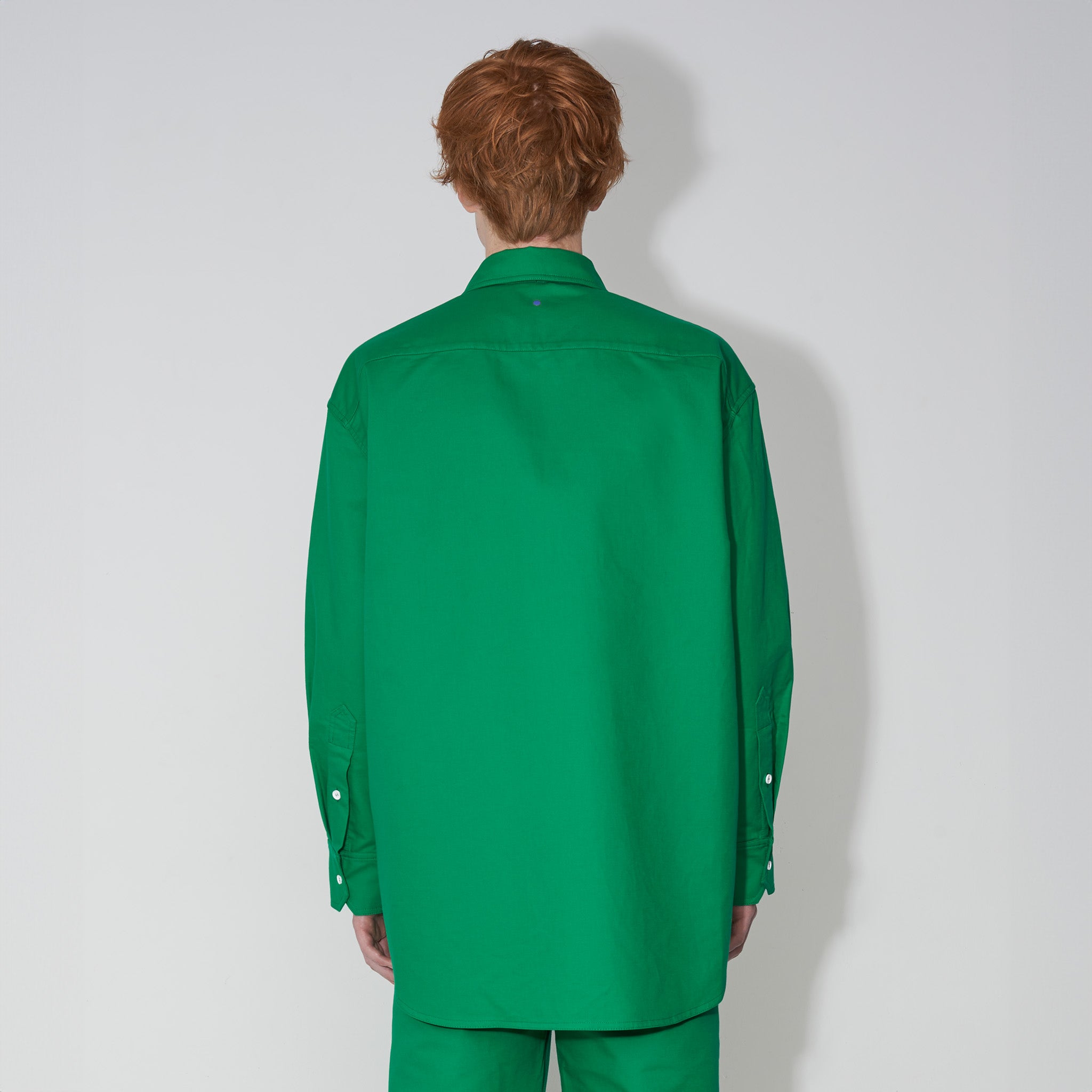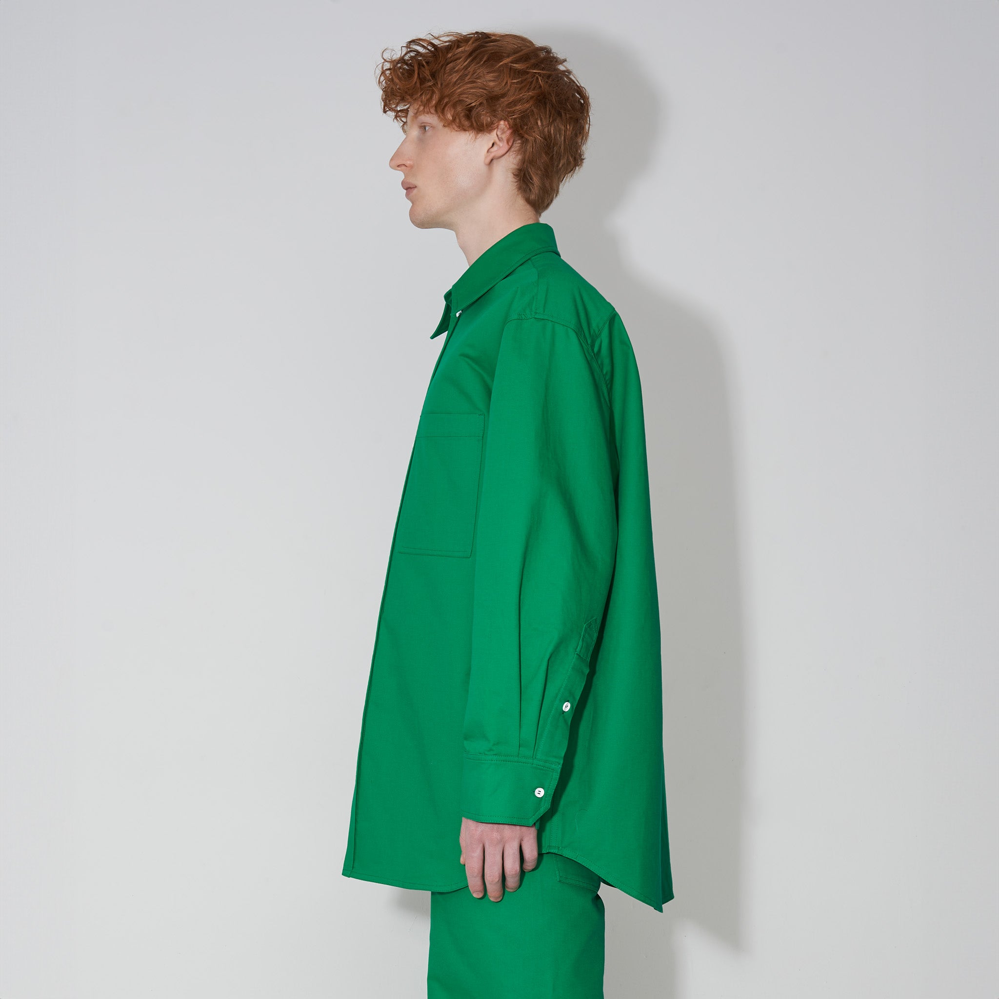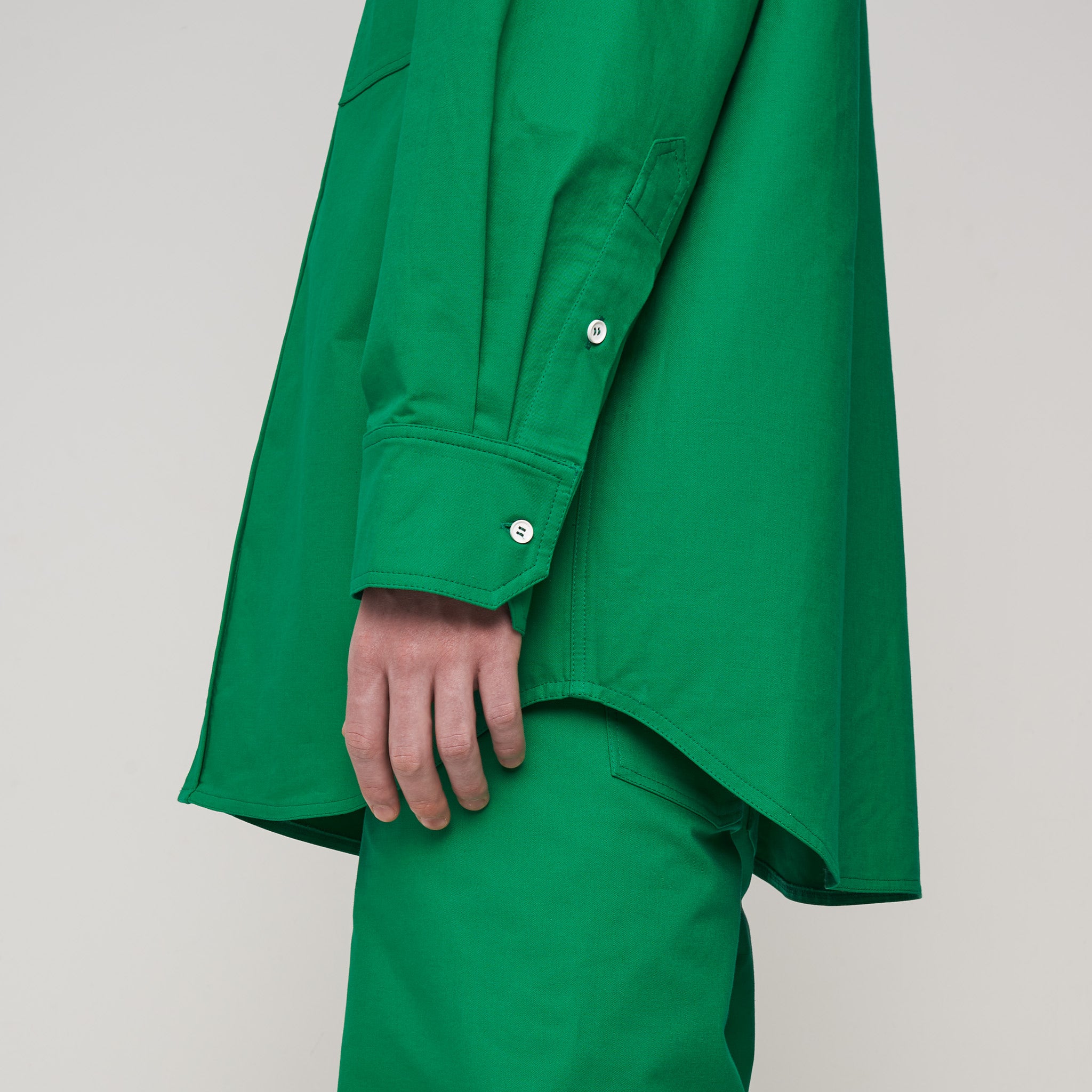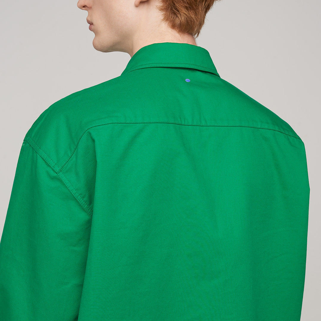 This upcycled jellybean green overshirt is a statement look in itself. Wear yours over a sheer top or on its own and get ready to grab the attention.