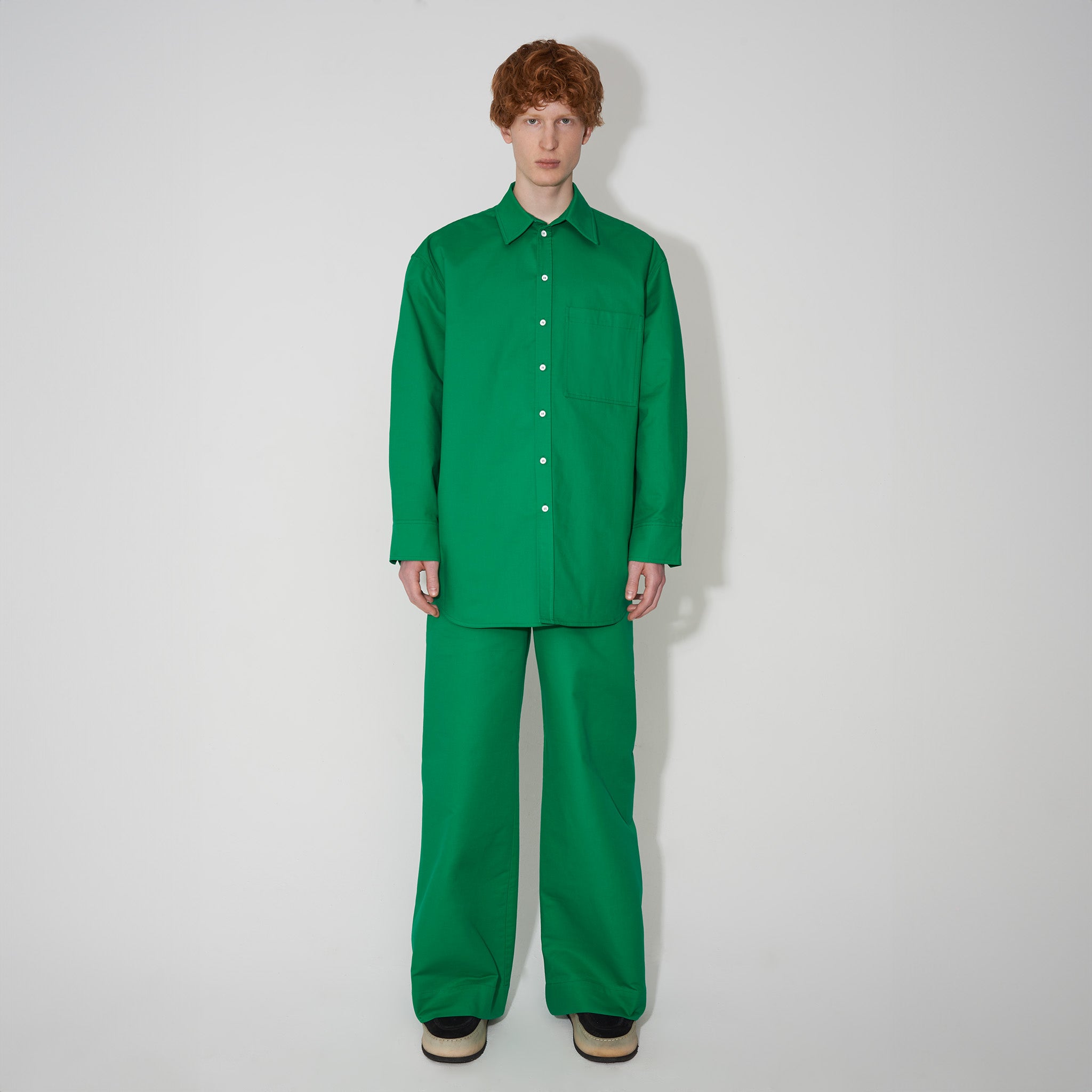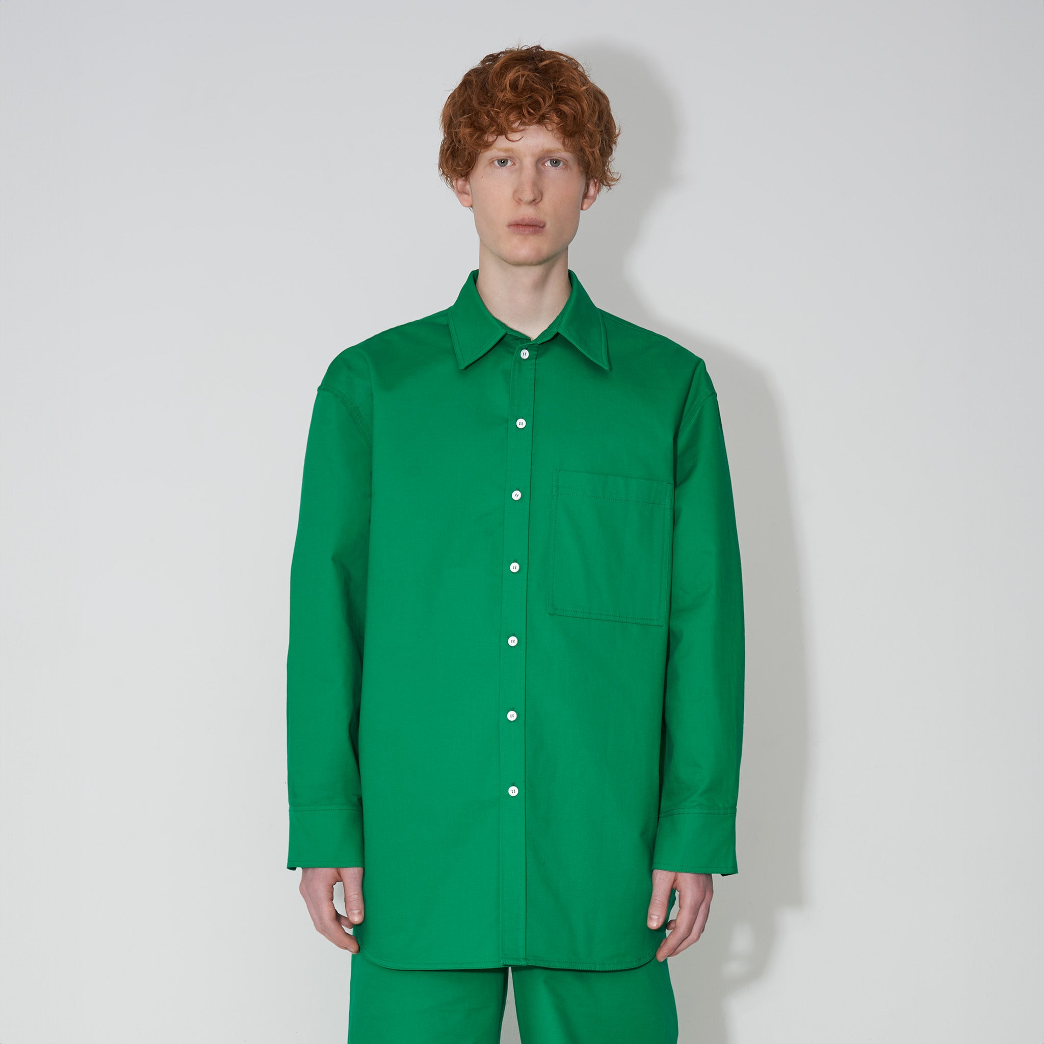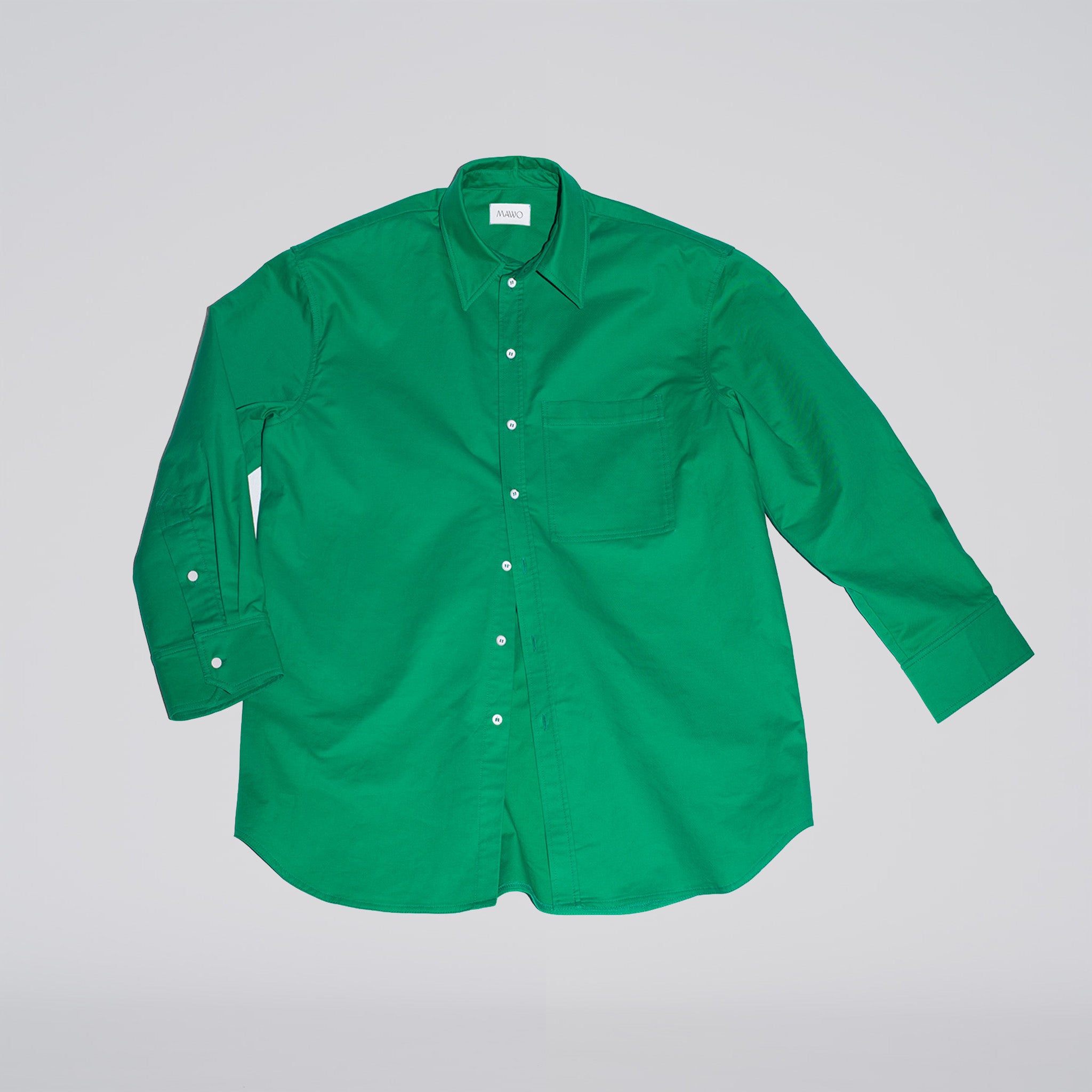 This upcycled jellybean green overshirt is a statement look in itself. Wear yours over a sheer top or on its own and get ready to grab the attention.