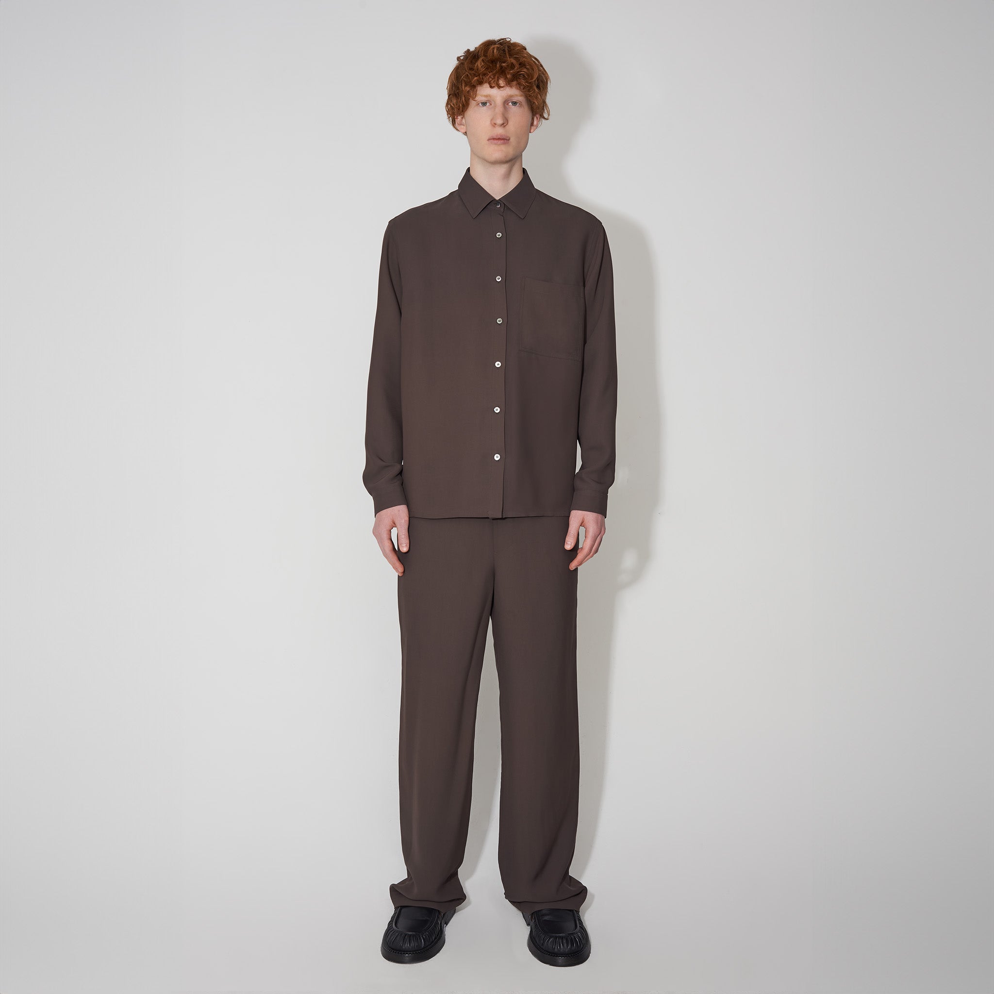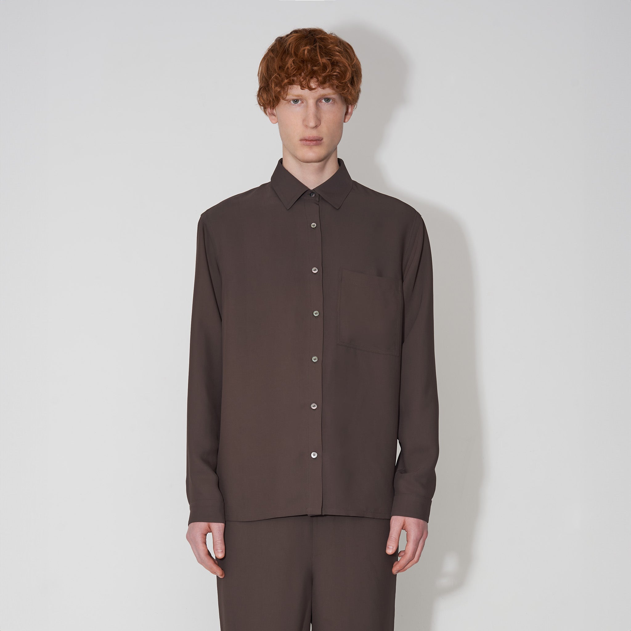 Dive back into memories of cushioning comfort with this fluid pyjama shirt, without overlooking its high styling potential. Day or night its soft touch will make you feel grounded and relaxed.